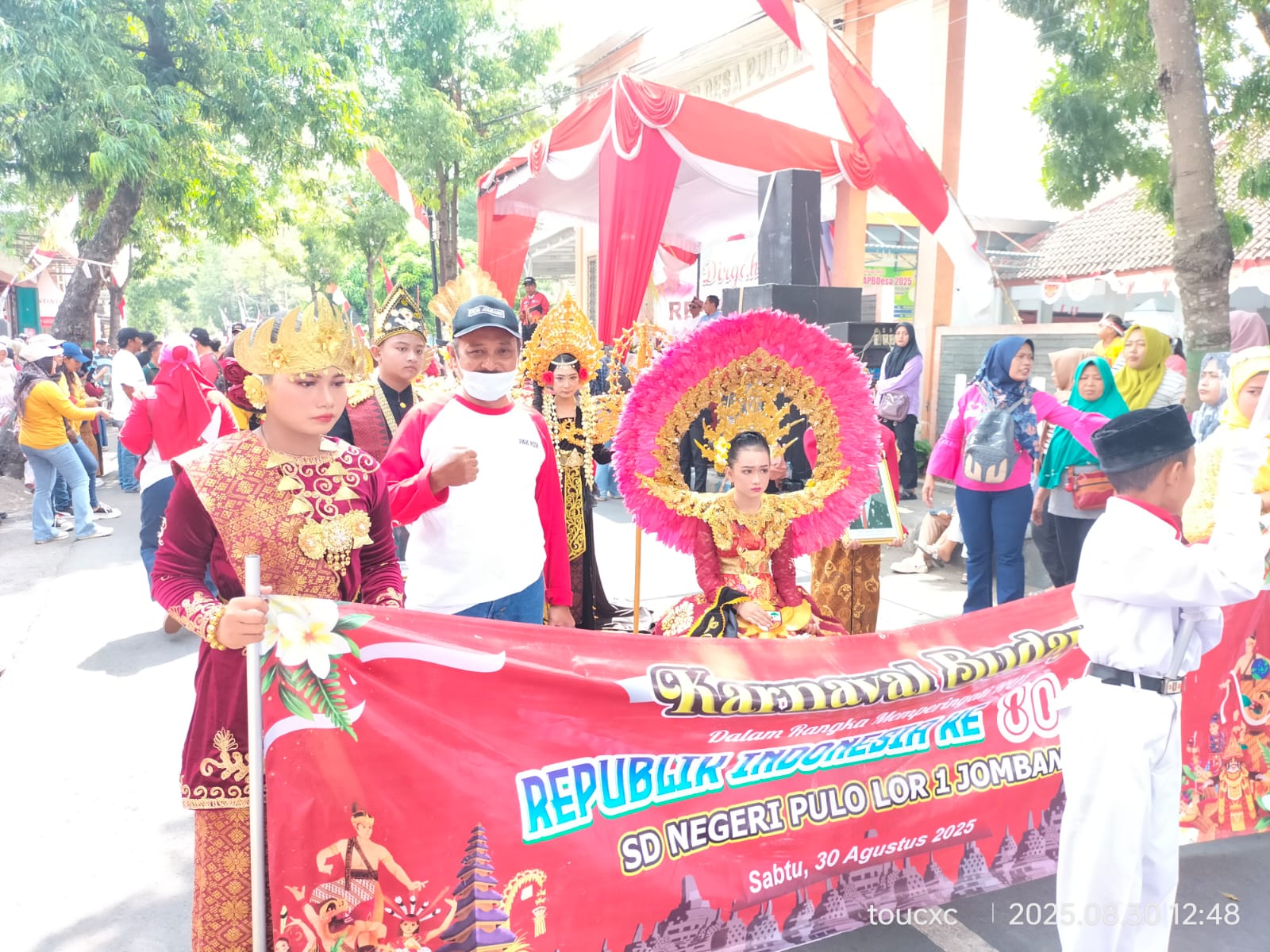 JOMBANG, Jatim.News — SDN Pulolor I Jombang turut serta memeriahkan peringatan Hari Ulang Tahun ke-80 Kemerdekaan Republik Indonesia dengan menampilkan barisan paskibraka serta maskot di barisan kehormatan. Penampilan tersebut berhasil memukau masyarakat dalam gebyar karnaval budaya Desa Pulolor, di mana rombongan SDN Pulolor I tampil di depan jajaran Pemerintah Desa Pulolor dan BPD, Sabtu (30/8/2025).
