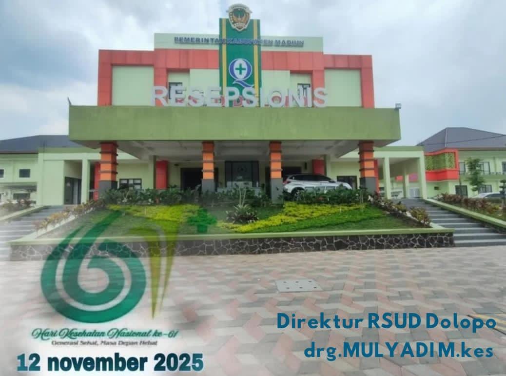 MADIUN, Jatim.News — Direktur RSUD Dolopo Kabupaten Madiun drg. Mulyadi, Kes. beserta karyawan dan karyawati mengucapkan “Selamat Hari Kesehatan Nasional yang Ke-61 tahun 2025″.