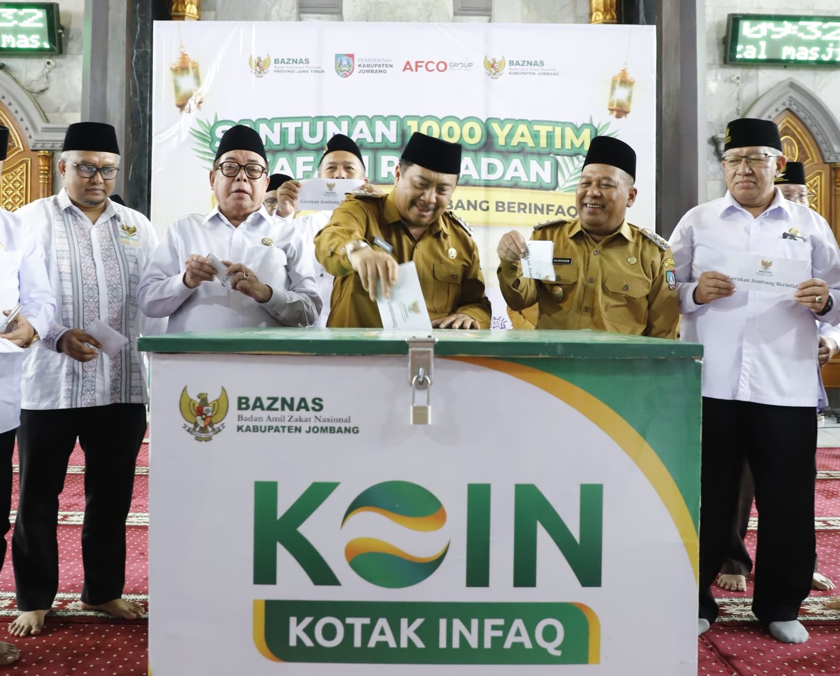 JOMBANG, Jatim.News — Berlokasi di Masjid Agung Baitul Mukminin Kabupaten Jombang pada Selasa (3/3/2026) pagi. Pemerintah Kabupaten Jombang bersama BAZNAS Provinsi Jawa Timur, BAZNAS Kabupaten Jombang, serta AFCO Group menggelar acara Santunan 1.000 Anak Yatim sekaligus peluncuran (Kick Off) Gerakan Jombang Berinfaq.